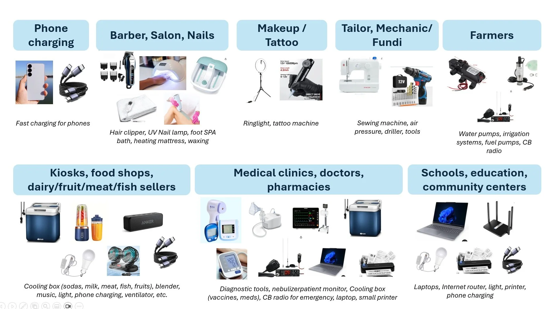 Examples: A large variety of tools that can be powered